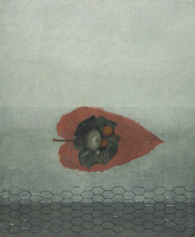 In her tranquil, poetic tempera paintings, erika roessing repeatedly rearranges similar objects – and yet each painting is unique. Her oeuvre, comprising some 180 still lifes, radiates calm and subtle colourfulness. Geometric surfaces structure the compositions, creating an ornamental quality and coalescing with impressions from her travels and favourite motifs such as apples, birds and jugs. Theme and variation are the hallmarks of the work of this artist, who deserves to be rediscovered and whose last solo exhibition took place in 1980 at the Neue Galerie der Stadt Linz.