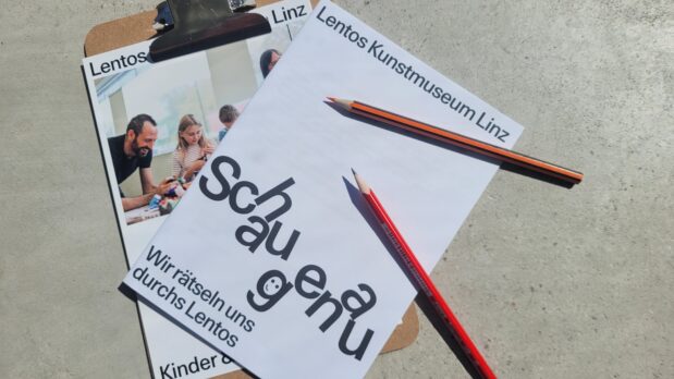 Mit dem Kinderfolder „Schau Genau – Wir rätseln uns durch das Lentos“ könnt ihr unsere Sammlungs-Ausstellung auf spielerische Weise selbstständig erkunden.Kostenfrei an der Kassa des Museums erhältlich